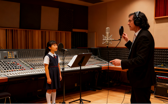 以小学五年级《虫儿飞》二声部合唱教学为例,第一步,声部拆分训练—— 将学生按 “高音区(1-3 年级)”“低音区(4-5 年级)” 分为两个声部,高音部重点练习 “5 3 5 | 3 1 3 |” 的明亮音色,要求声音 “轻而集中”;低音部重点练习 “3 1 3 | 1 6 1 |” 的沉稳音色,要求声音 “稳而饱满”,每个声部单独训练时,用钢琴定调,教师逐句纠正音准,确保单个声部演唱准确;第二步,声部互动训练—— 采用 “轮唱式” 配合,先由高音部唱第一乐句,低音部在第二乐句加入,教师用手势提示声部进入时机,重点解决 “声部衔接处的音准偏差”(如高音部 “3” 转 “1” 时,低音部需稳定 “1” 的音高,避免被带偏);第三步,和声融合训练—— 两个声部完整合唱,教师用 “听辨对比法” 指导:先播放专业合唱版本,让学生感受 “和声的饱满感”,再对比自己的演唱,找出 “高音部过强、低音部过弱” 的问题,通过 “调整音量比例”(高音部音量减 1/3,低音部音量加 1/3),最终实现 “高音清亮、低音厚重” 的均衡和声。