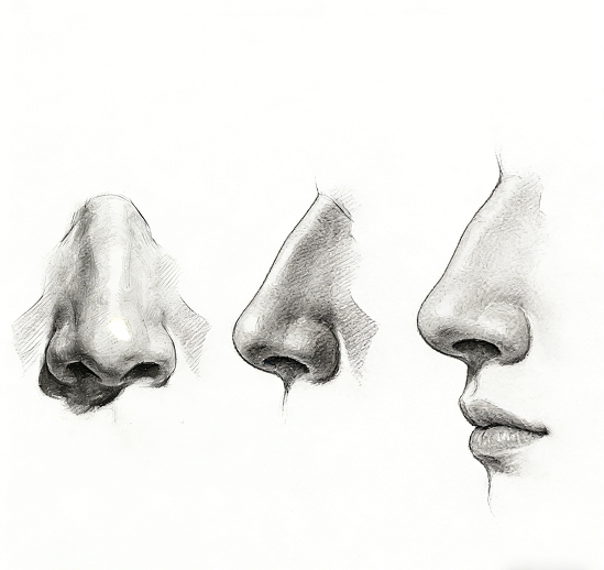 ▪ 鼻子:理解鼻梁骨、鼻头、鼻翼的体积关系,避免 “扁平无立体感”