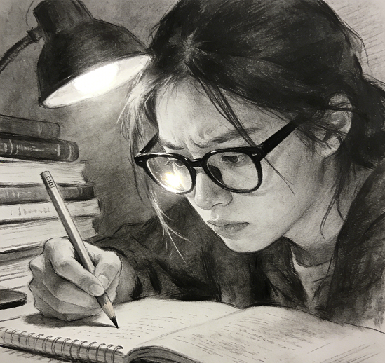 ▪ 练习:带生活场景的头像(如 “戴眼镜的学生”“劳动者肖像”),强化人物神态与情绪表达,每周 1 次主题创作(如 “专注”“沉思”)