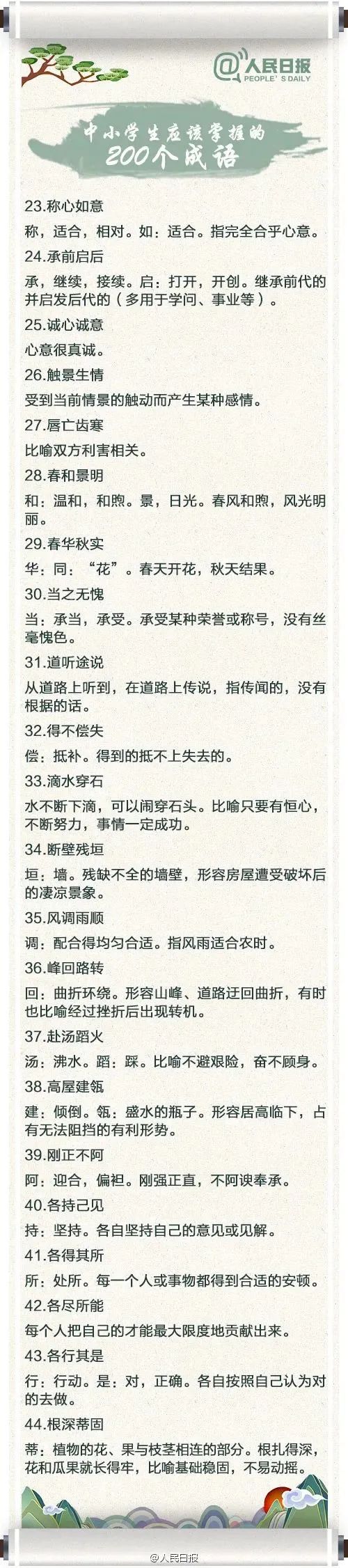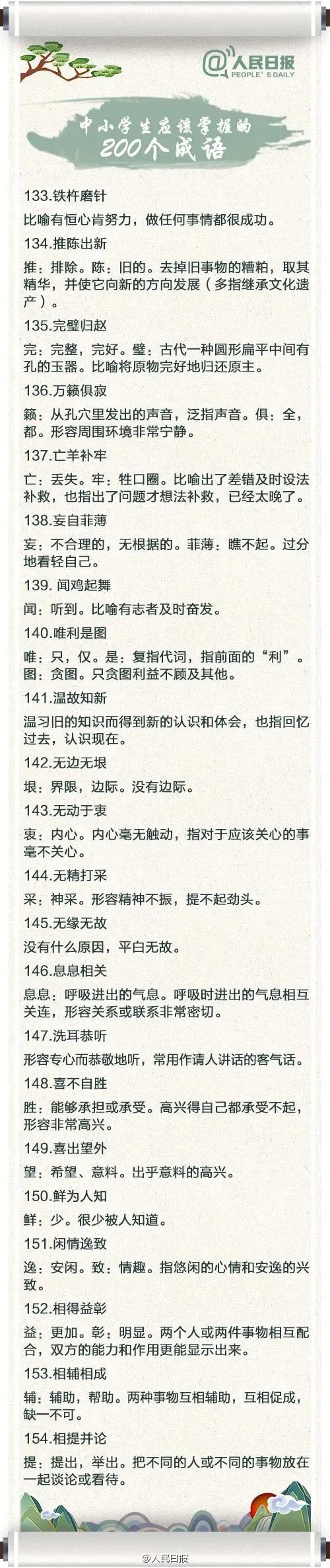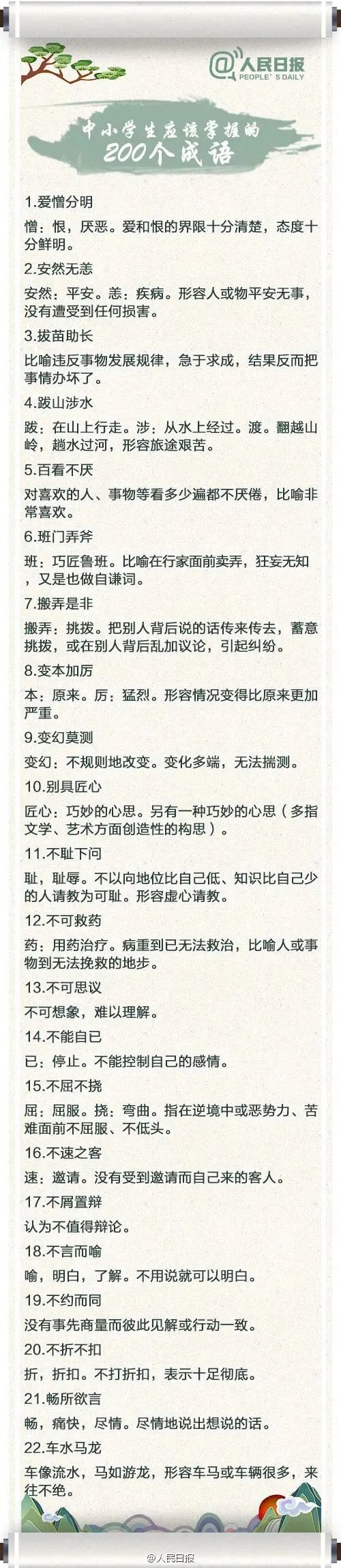 人民日报:送给暑期的中小学生,该掌握的200个成语