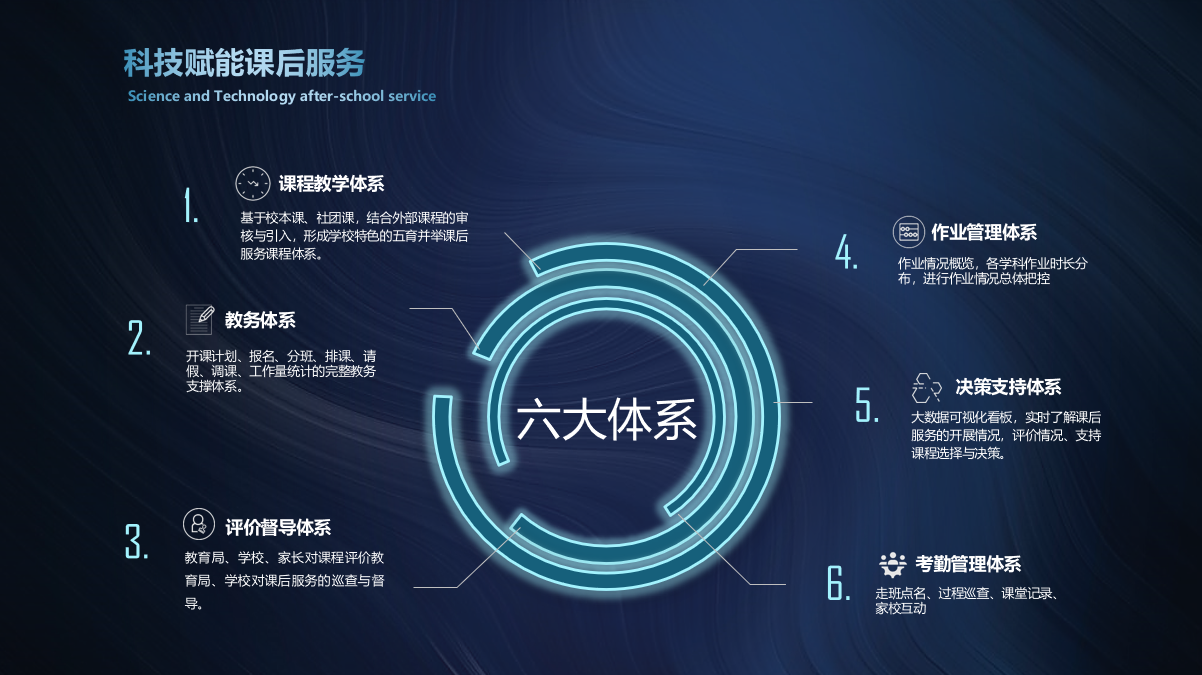 (1)可对各学校课后教育活动进行全流程监管,并提供绩效考核数据依据。